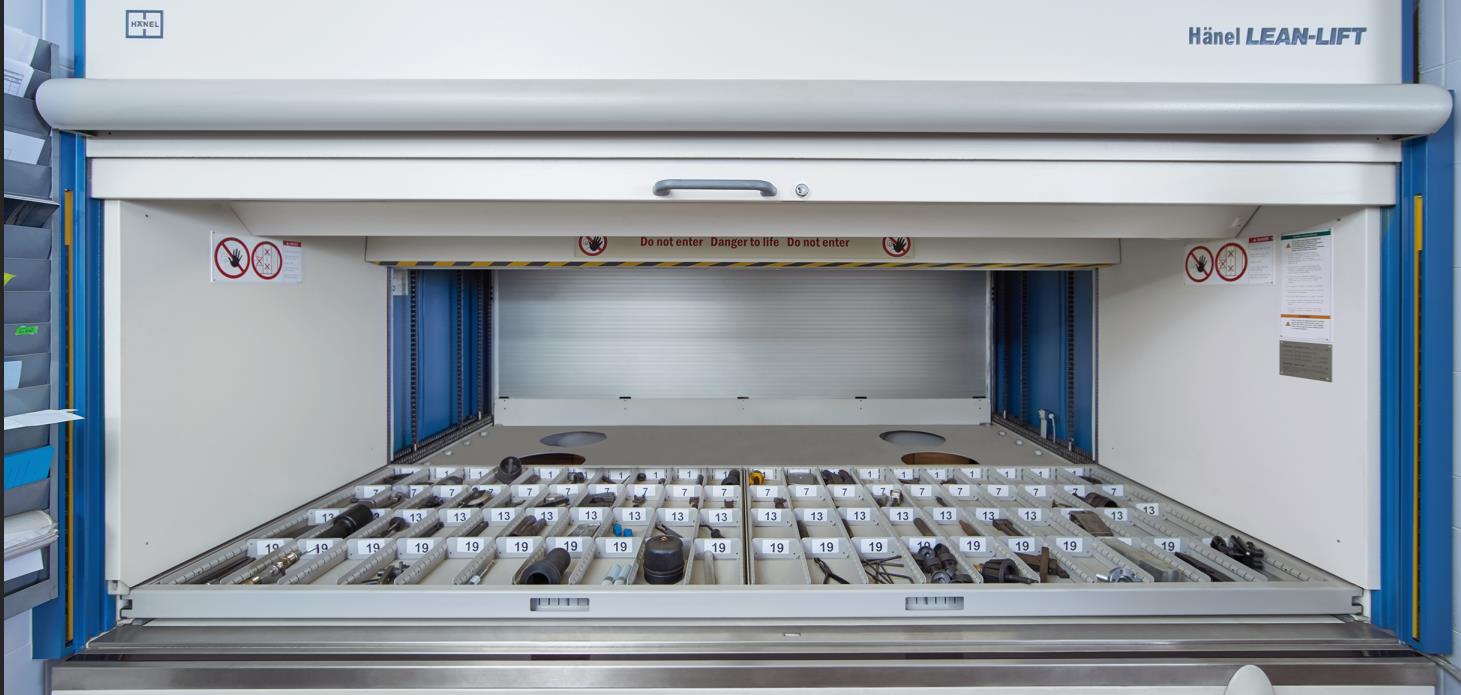 1. 亨乃爾(Haenel) 垂直升降貨柜:托盤(pán)做內(nèi)部做金屬分割條,便于存取擺放。加上亨乃爾智能倉(cāng)儲(chǔ)軟件,更加精確記錄和存取物料。
